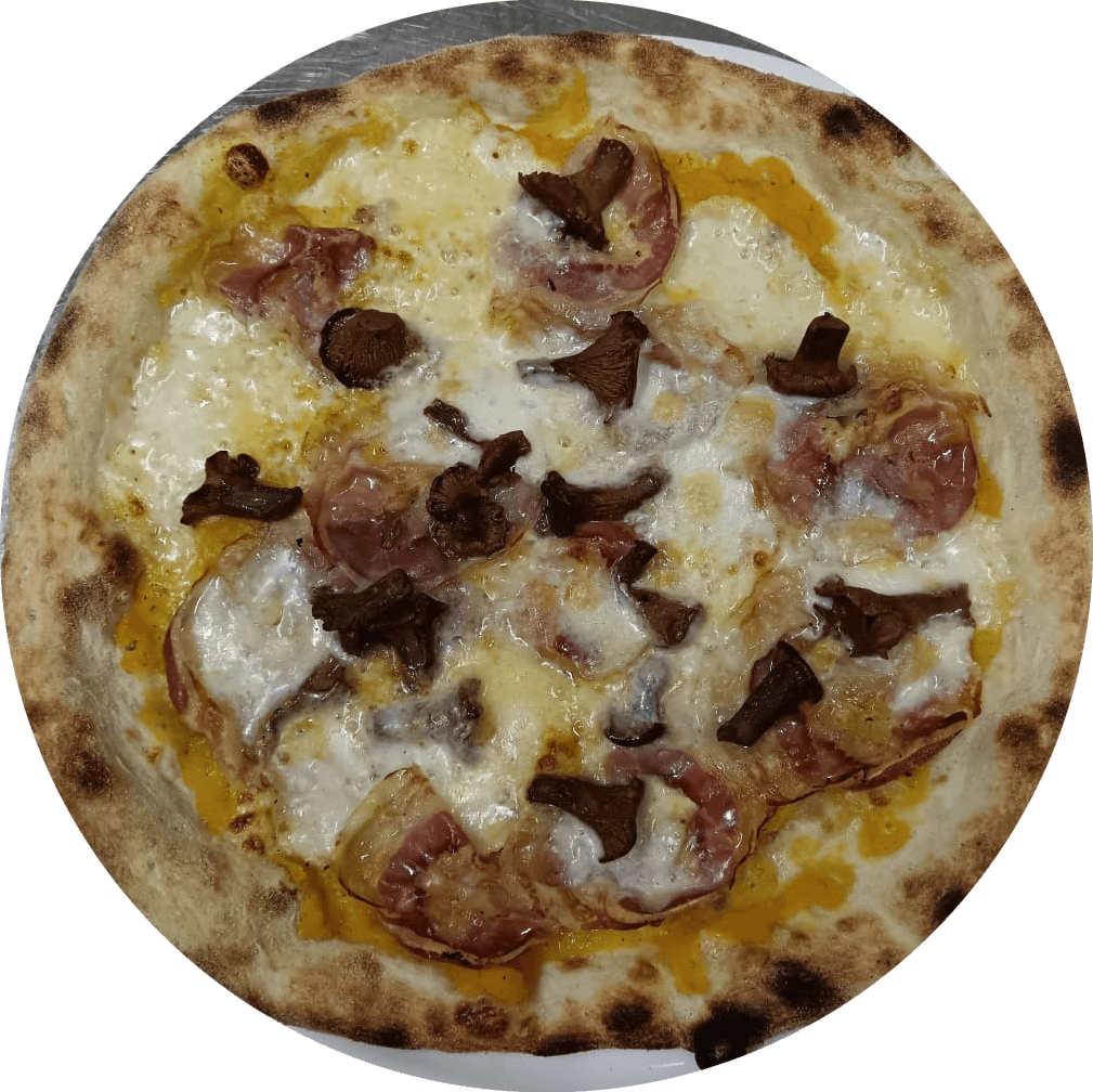 Mozz, crema di zucca, taleggio, gialletti, pancetta